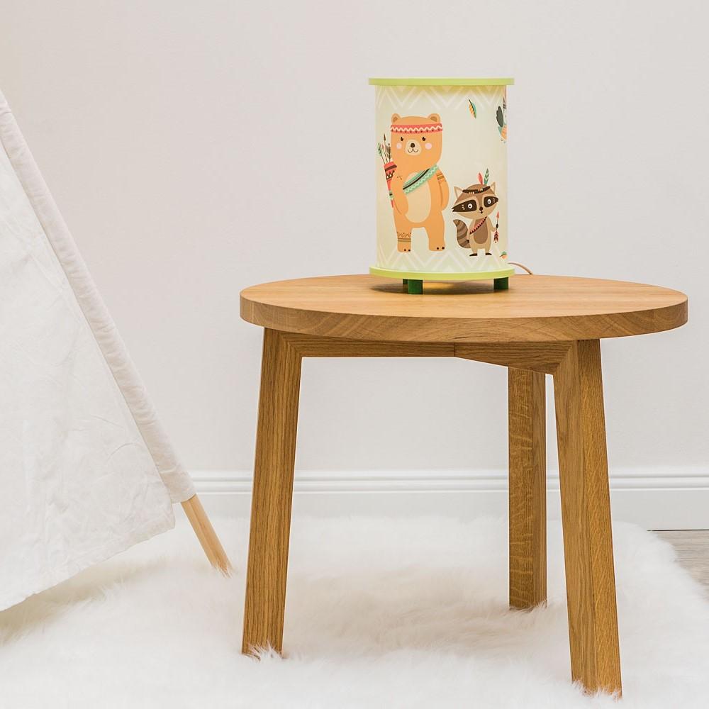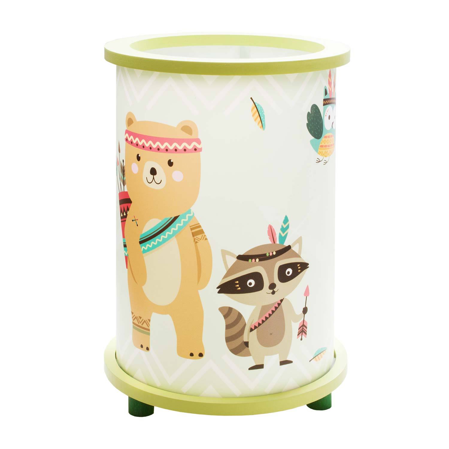 Το φωτιστικό “Little Indians” δημιουργεί υπέροχο φωτισμό. Το μικρό ρακούν και το αρκουδάκι ζούνε μαζί με τους άλλους Ινδιάνους φίλους τους σε μια φυλή, με στόχο να φωτίσει τα δωμάτια των παιδιών. Με το χαριτωμένο μοτίβο και τα χρώματα που ταιριάζουν, το φωτιστικό γίνεται πραγματικά εντυπωσιακό. Το επιτραπέζιο φωτιστικό κατασκευάζεται με υλικά φιλικά προς το περιβάλλον και διαθέτει καλώδιο μήκους 2 μέτρων με διακόπτη. Η πηγή LED 3W είναι ενσωματωμένη και δεν μπορεί να αντικατασταθεί.